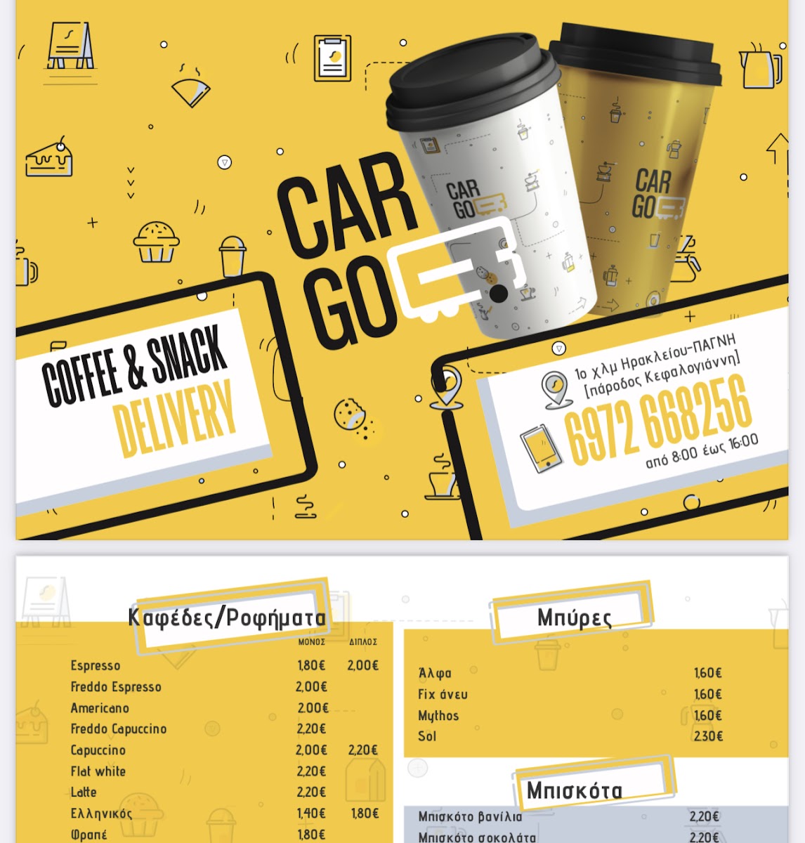 Welcome to Cargo Cafe, a charming eatery nestled in Iraklio, Greece, perfect for coffee lovers and snack enthusiasts alike. The menu features a delightful selection of homemade sweet treats from Τα Γλυκά Της Αργυρώς, including crunchy sesame pasteli and mouthwatering chocolate chip cookies, each priced at €2.50 for 130g of irresistible flavor.